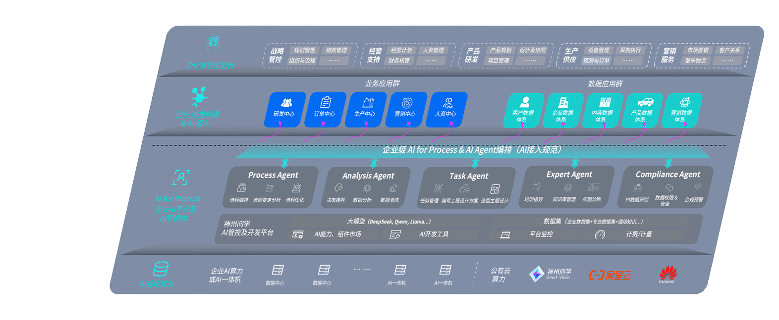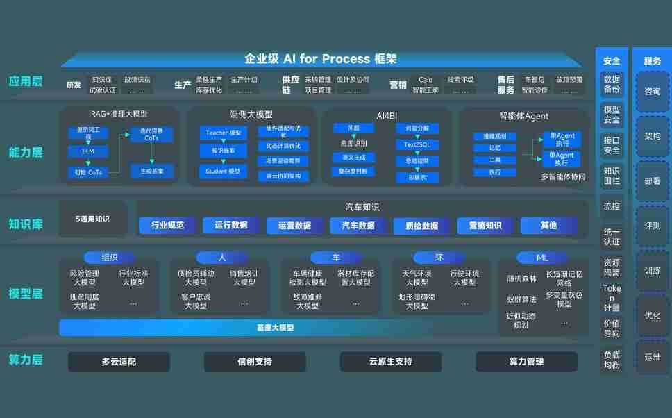 端到端的一站式AI工作空间深度融合了从企业战略规划到日常经营的全流程业务板块,,,定向解决车企内部领域多、、、部门多、、、、链条长、、场景碎片化等难题,,,,支持车企快速构建以AI为核心的生产力写作体系,,实现任务执行与AI能力的无缝集成与交互